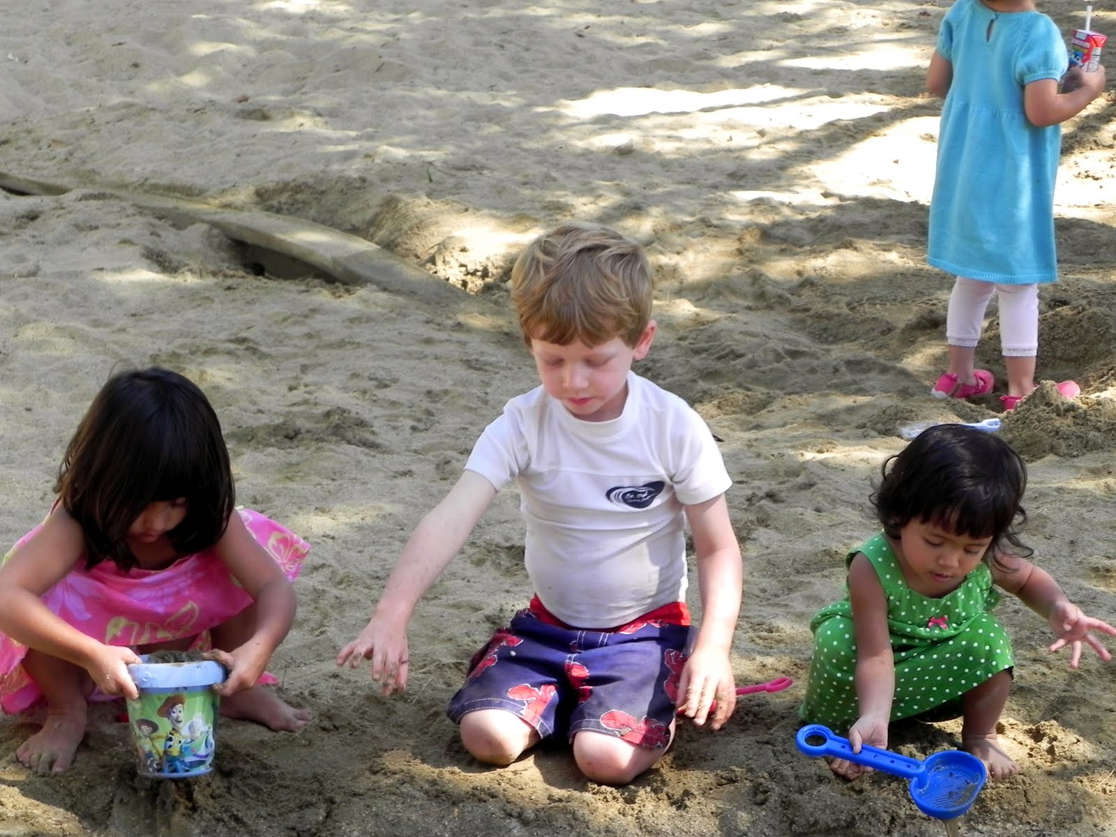 "Nana Kreditor" Papa, and Lucy show Henry how to float his boat.